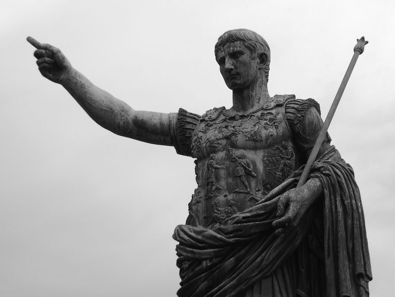 Now, the end result of various polluted people trying to save the Republic in Rome was a series of bloody civil wars that eventually sort of burned themselves out, and paved the way for Augustus Caesar, who is probably a model of what's to come. Because Augustus Caesar destroyed the Republic in the name of saving it. His big slogan was "the Republic restored" after all the civil wars, but Augustus's restoration was a series of legal revolutions put through over 20 years that basically eviscerated the Republic, and laid the groundwork for the Empire. And it's important to note that nobody mourned the de facto death of the Republic. Quite the contrary. Augustus Caesar was hailed as a Savior, was hailed as a living God. Now, Augustus Caesar's revolution would not have been possible had not Julius Caesar conducted a direct assault on the whole structure of the Roman Republic, and appointed himself dictator for life. Now, the appointment of dictator in Roman society is not unique, as we have discussed. It was normally a decision in wartime. Caesar swept aside the whole structure of the system and appointed himself as dictator.