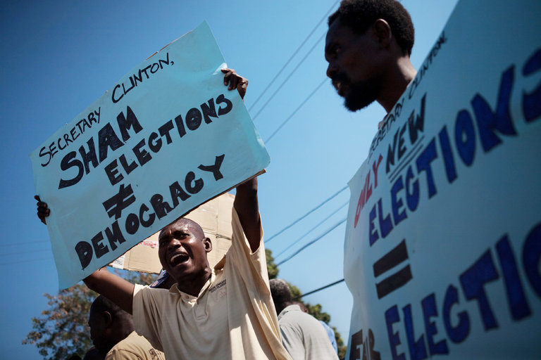 (Protesters demonstrated against Hillary Clinton in Port-au-Prince during her visit there as secretary of state in January 2011. )